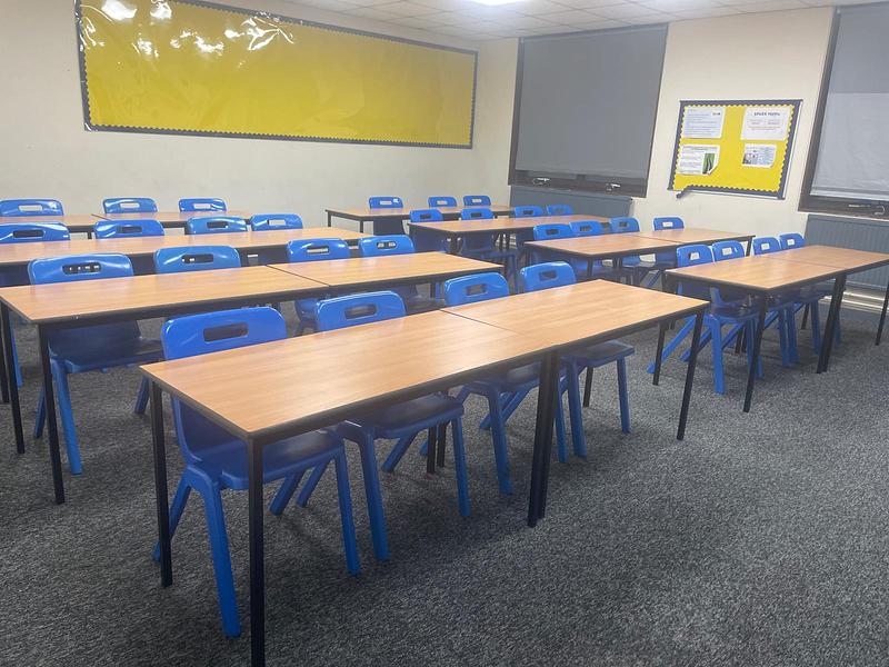 Full size school desks and chairs, school decor