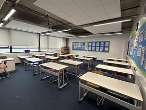Our classroom at Ark Walworth Academy offers a conducive environment for growth and engagement. Featuring full-size desks and chairs, this spacious room comfortably accommodates up to 30 individuals. Whether you're hosting lectures, seminars, or workshops, our well-equipped facility ensures every participant has the space they need to focus and thrive. With ample natural light and an open atmosphere, it's an ideal setting.