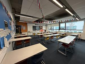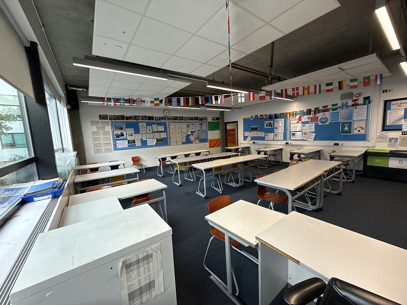 Our classroom at Ark Walworth Academy offers a conducive environment for growth and engagement. Featuring full-size desks and chairs, this spacious room comfortably accommodates up to 30 individuals. Whether you're hosting lectures, seminars, or workshops, our well-equipped facility ensures every participant has the space they need to focus and thrive. With ample natural light and an open atmosphere, it's an ideal setting.