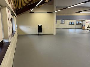 The upper Dance studio includes optional curtain partitioning, mirror wall and access to a kiosk. It can be used as an open space for dance, rehearsals or other activities. It can also be set-up with tables and chairs to create most variations of meeting layout.