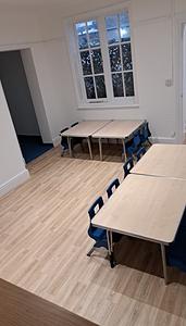Welcome to our school house!. Recently renovated, the downstairs is made up of two rooms, both 3m x 4.2m and connected to open up the full potential of this space. There is a small changing area next to the children's toilets and a separate toilet for adults. This space can come furnished or unfurnished and would be ideal for work shops, tutoring, lessons, clubs, meetings, group activities, coffee mornings and more.