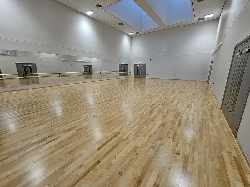 Modern room with sprung floor, mirror and bar. Perfect for dance or yoga
