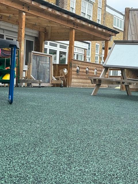 Surface: Acrylic - "Rubber" surface, often used for hard outdoor play areas that need to drain freely and provide a bit of cushioning, such as playgrounds or tennis courts